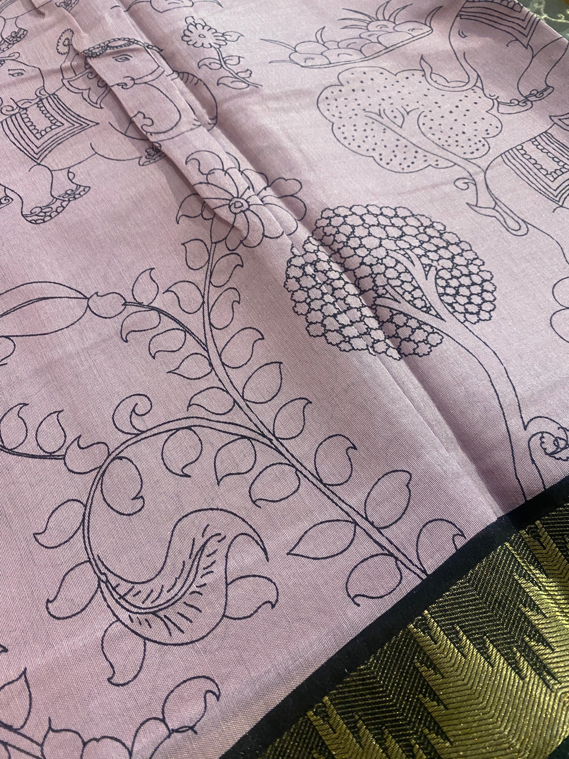 • Authentic Craftsmanship: Every saree is hand-painted using a kalam (pen) — no prints, no shortcuts.