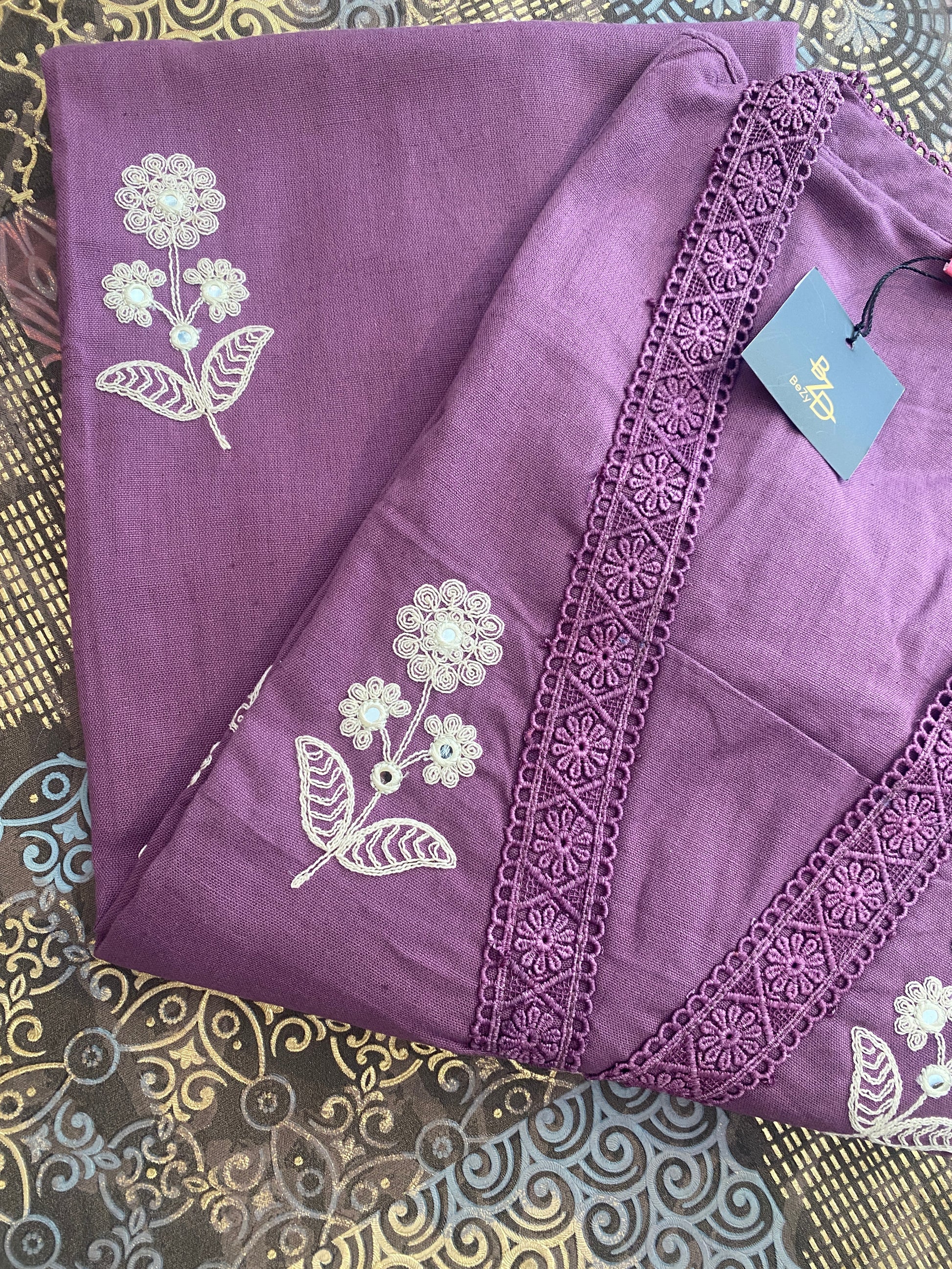 Imported Flex Cotton Top & Bottom Set – Elegant Embroidered Design
