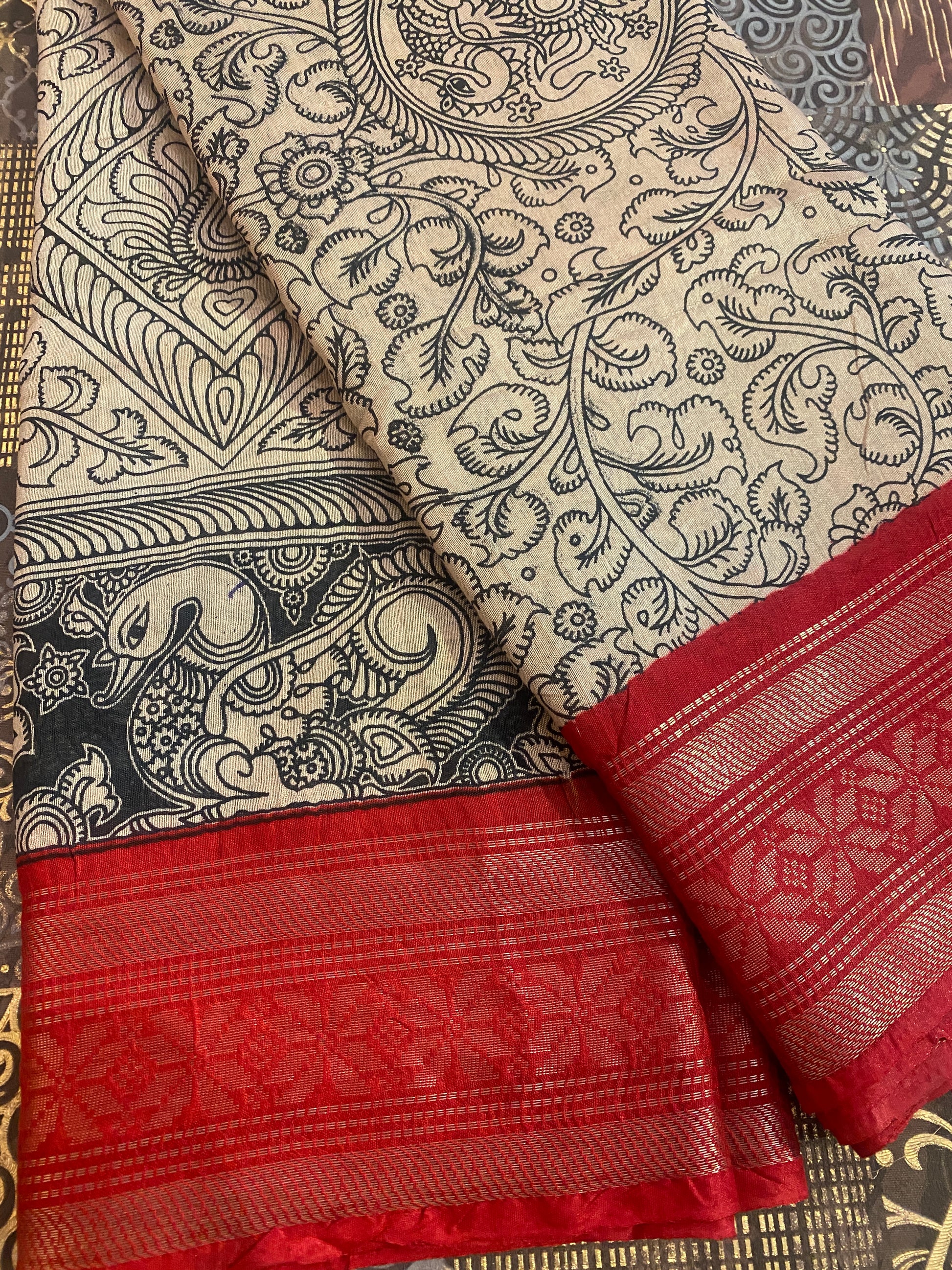 • Premium silk-based Penkalamakri fabric