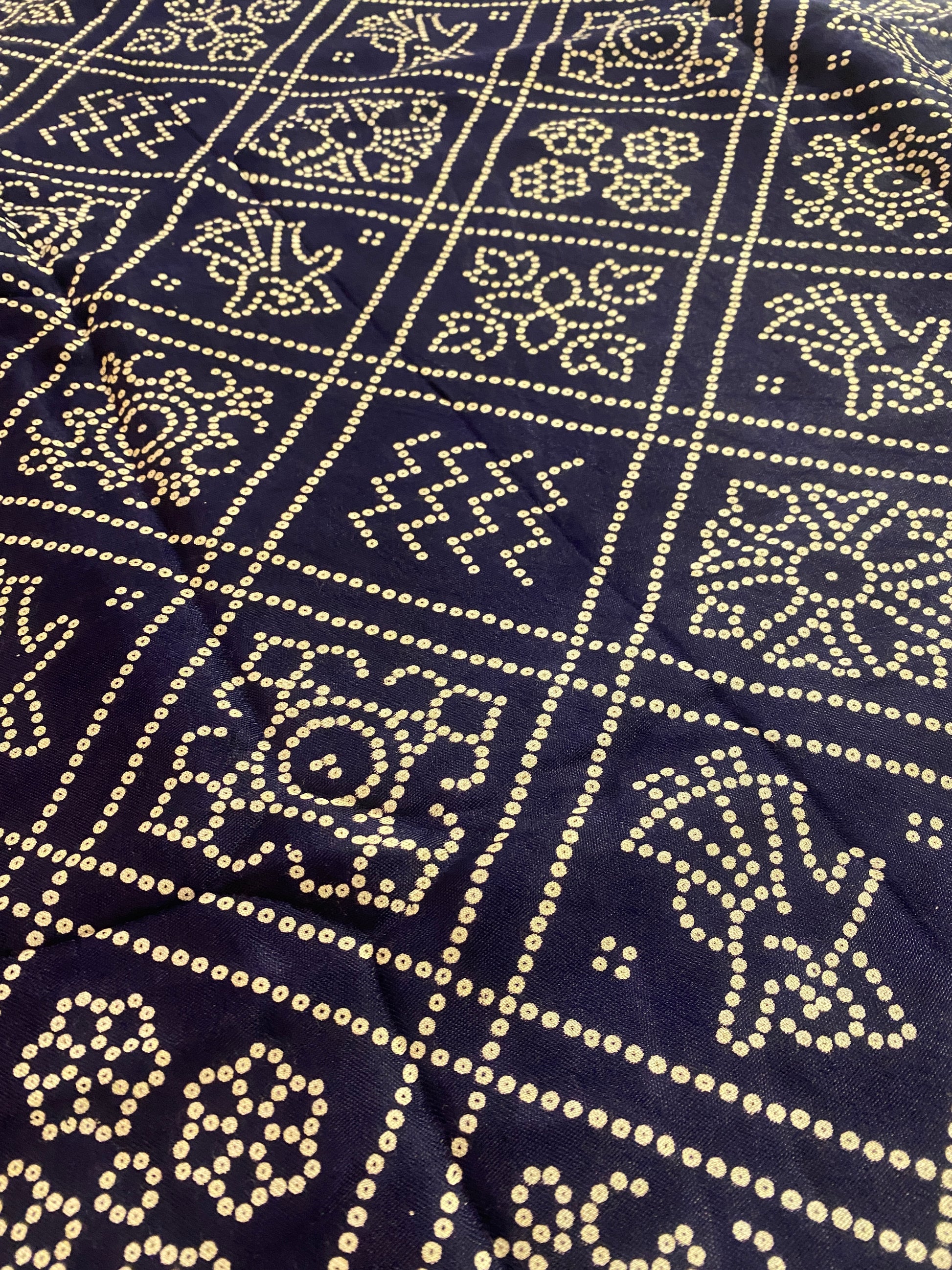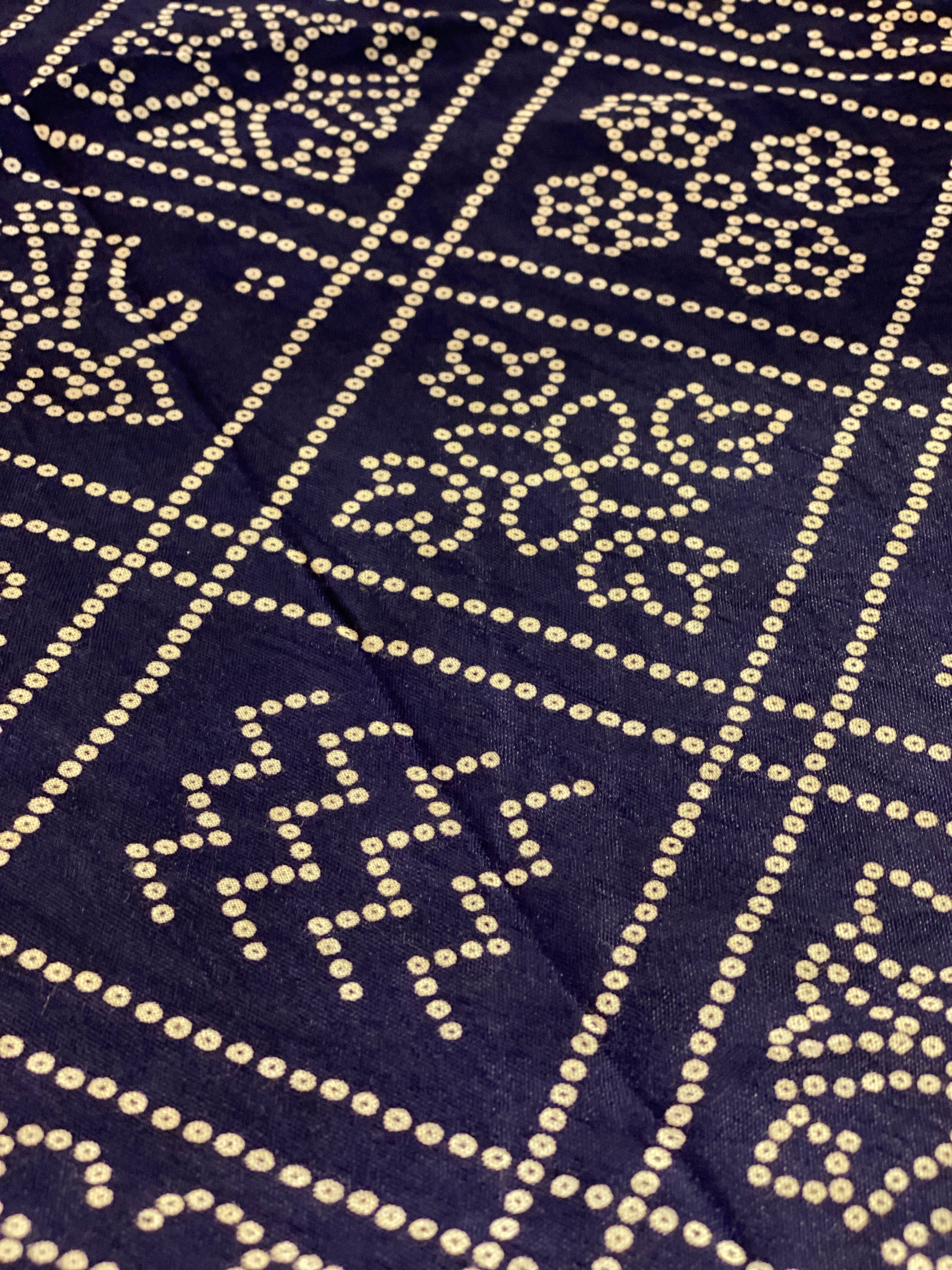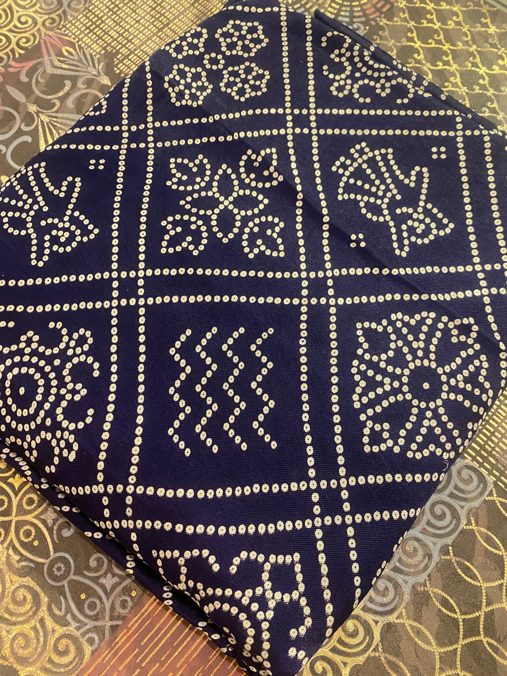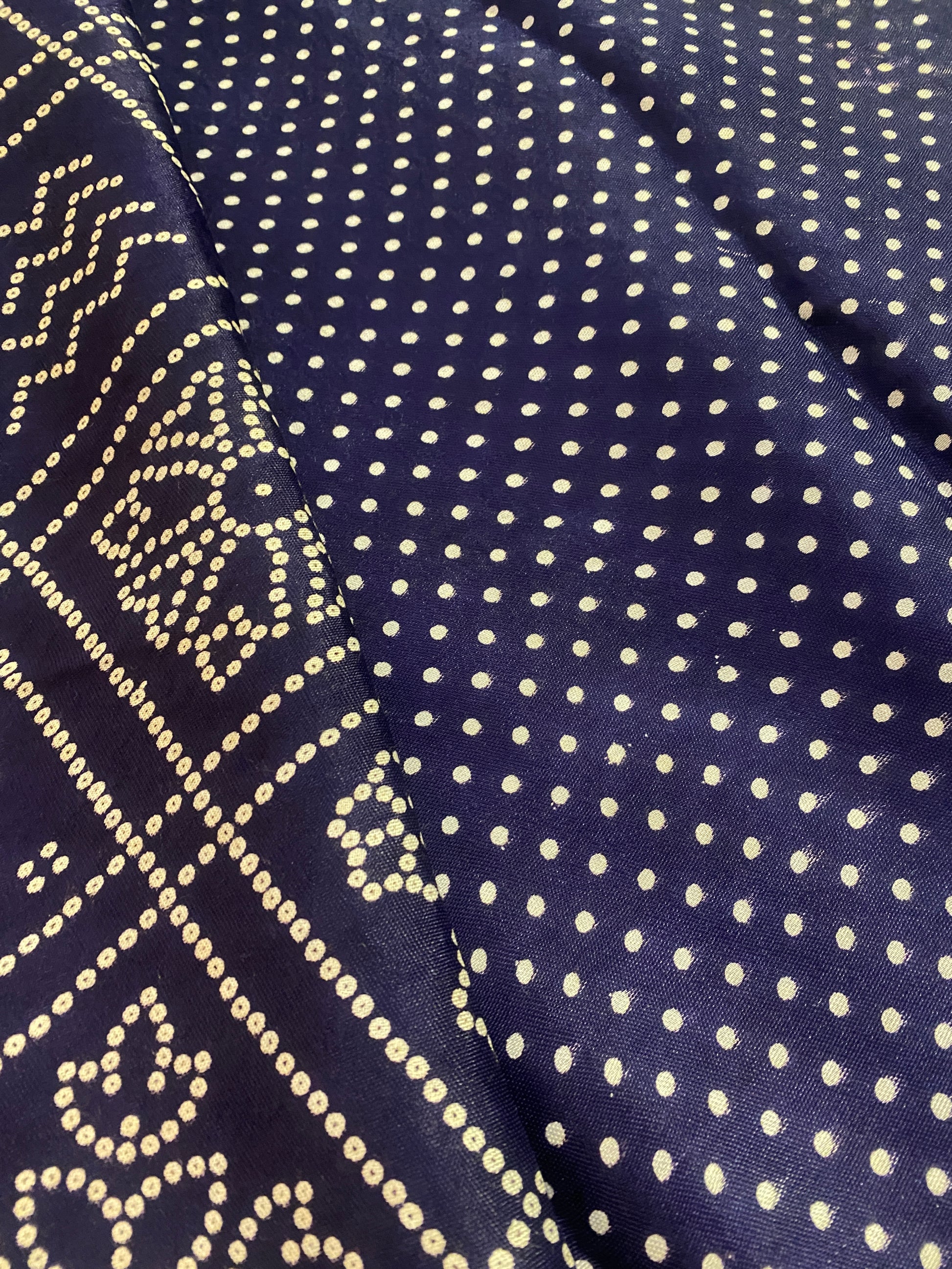 Made using pure fabrics like gajji silk, georgette, chiffon, cotton, or modal satin, these sarees are adorned with intricate dotted patterns created by hand-tying thousands of tiny knots before dyeing — a process that takes time, patience, and masterful artistry.